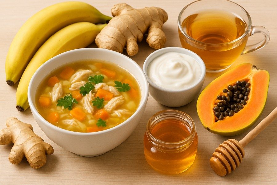 Cuando estás enfermo, cada alimento cuenta. Elegir opciones naturales, nutritivas y fáciles de digerir puede marcar la diferencia entre una recuperación lenta y una recuperación efectiva. Alimentos como el caldo de pollo, el jengibre, los plátanos y el yogur no solo nutren, sino que alivian los síntomas, hidratan y ayudan al cuerpo a sanar.