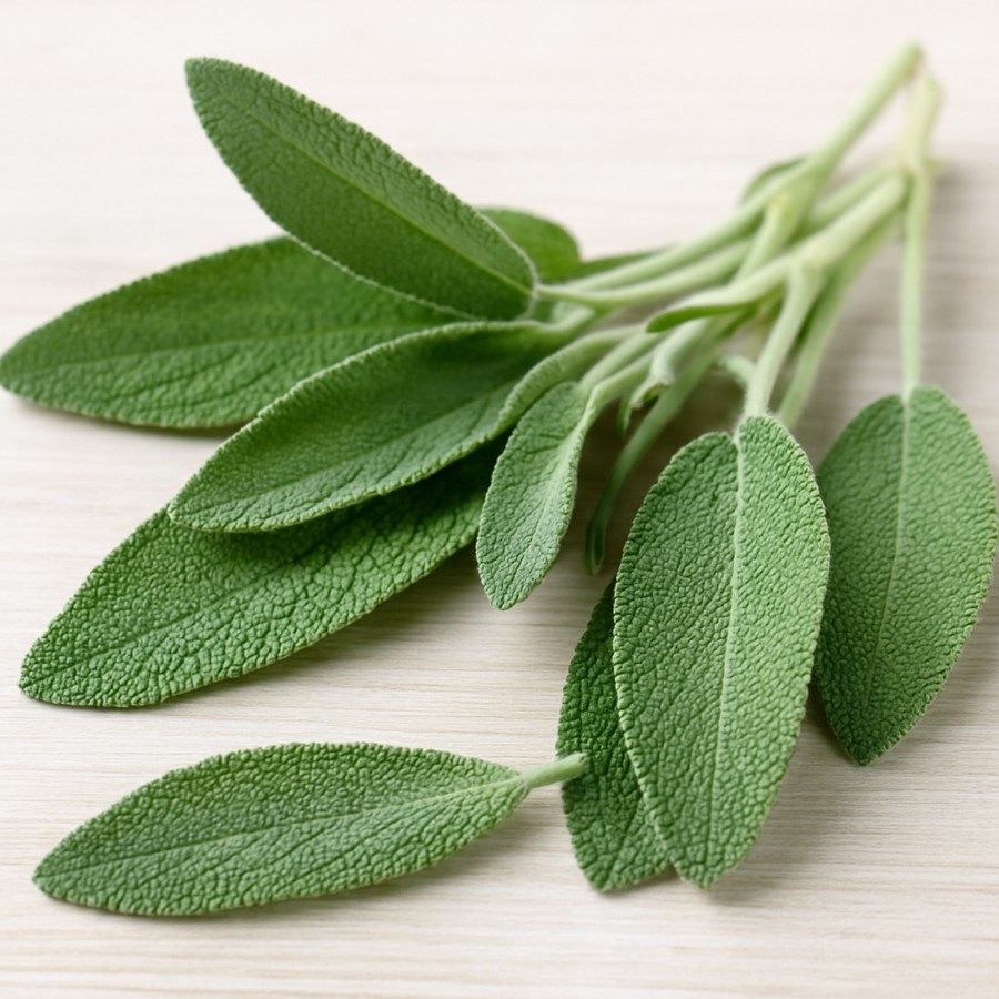 La salvia (Salvia officinalis) es una planta perenne originaria del Mediterráneo. Sus hojas grises o verde plateado contienen aceites esenciales, flavonoides, ácidos fenólicos y compuestos antioxidantes que le otorgan propiedades antiinflamatorias, antimicrobianas, digestivas y más.